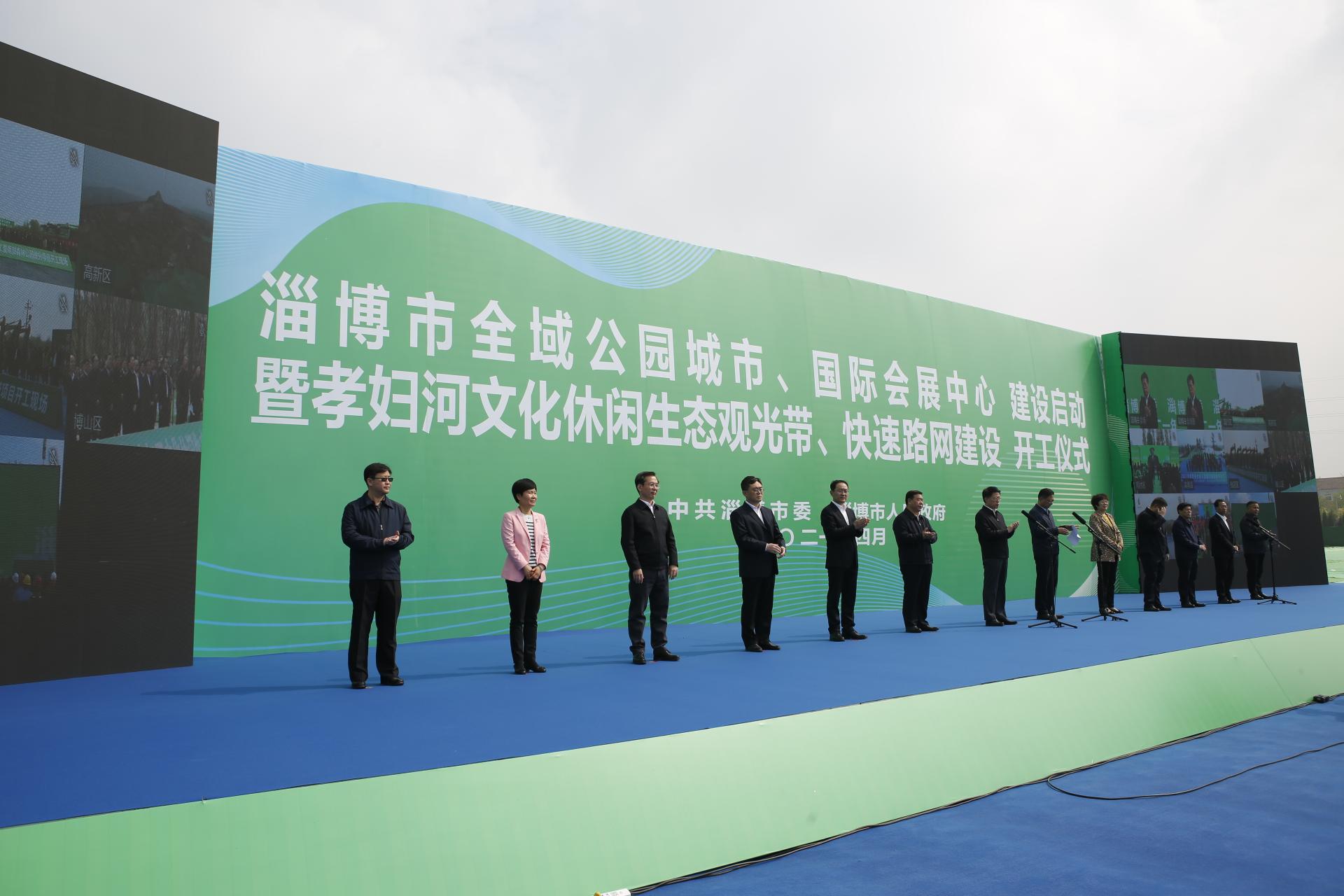 4月12日,淄博市舉行全域公園城市國際會展中心啟動暨孝婦河文化休閑生態觀光帶、快速路網建設開工儀式,吹響項目開工建設號角。