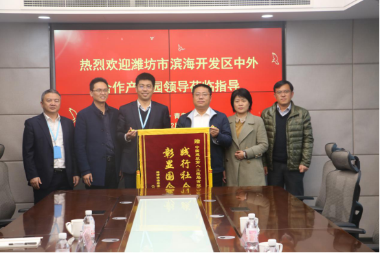 青島公司喜獲濰坊市濱海開發區中外合作產業園錦旗
