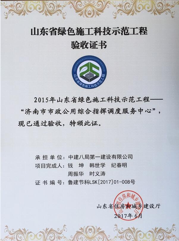 公司承建的“濟南市市政公用綜合指揮調度服務中心”通過山東省綠色施工科技示范工程驗收。