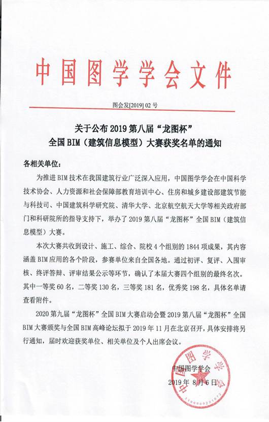 【八一機關 | 守正出新】我公司在2019第八屆“龍圖杯” 全國BIM大賽中喜獲佳績