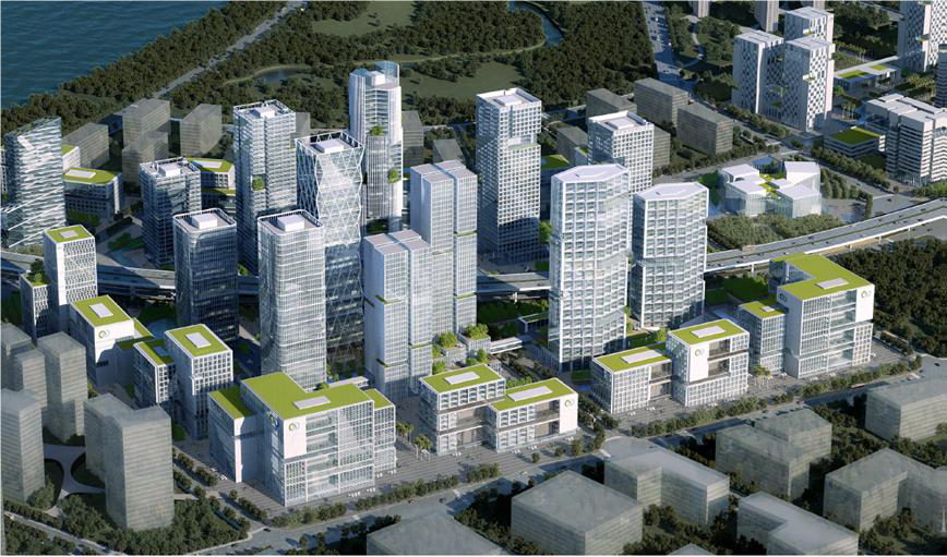 項目合同額34億,建筑面積45萬㎡,由5棟單體組成,其中2棟超高層,主要用于辦公樓、會議及展示中心等。建成后將成為產、學、住、商一體化的多功能、現代化新型科學園區。