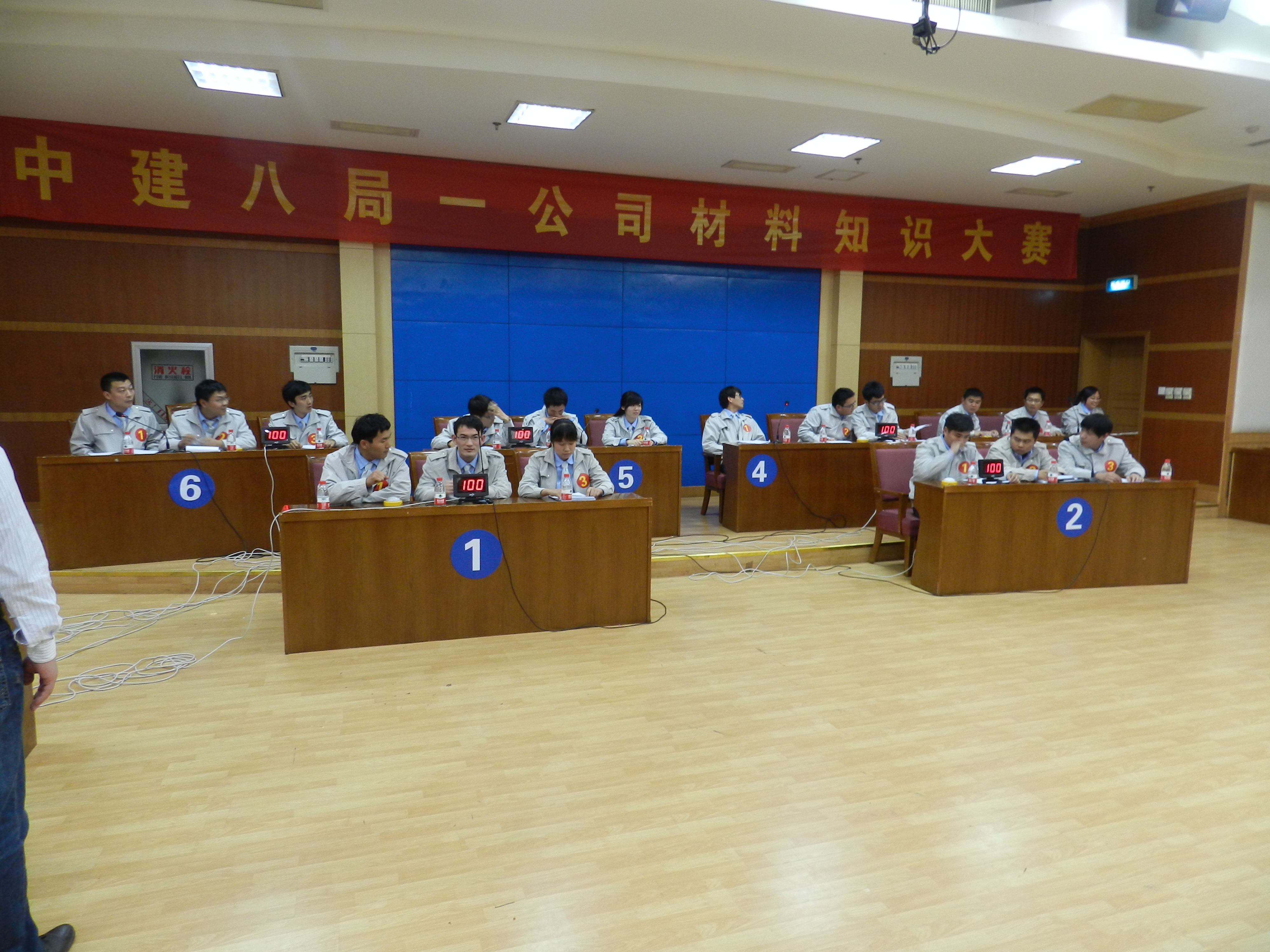 11月10日,濟(jì)南分公司材料知識(shí)大賽率先在山東省法官培訓(xùn)學(xué)院多功能廳舉行。公司總經(jīng)濟(jì)師車玉敏、物資管理部經(jīng)理梁忠誠、團(tuán)委書記高繼貴,濟(jì)南公司總經(jīng)濟(jì)師韓成濤、物資部經(jīng)理趙廣雷及40余名項(xiàng)目管理人員參加了大賽。