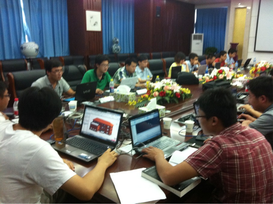 本次培訓由給我局多次培訓的上海毆克依信息技術有限公司負責授課,用九天半的時間對目前BIM核心軟件Revit architecture 2012等4個軟件應用進行了講解和培訓。白天老師認真講解、學員邊聽邊操作,并及時溝通、互動,晚上部分學員自覺總結,利用晚上的時間對白天所學內容進行梳理、鞏固。培訓期間正值端午節小長假,老師和學員都放棄了節假日休息時間,求知若渴,毫無怨言,大家戲稱用十天的時間找回了“學生時代”的感覺,非常美好。