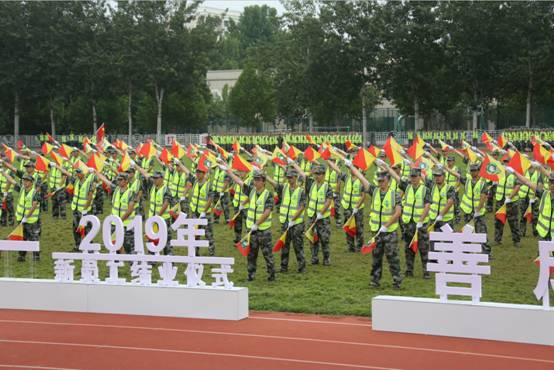 “我愿守土復開疆,堂堂中國要讓四方,來賀”。全體新鐵軍用整齊凌厲的動作展示精忠報國手語操,他們的愛國熱情,瞬間將現場點燃!