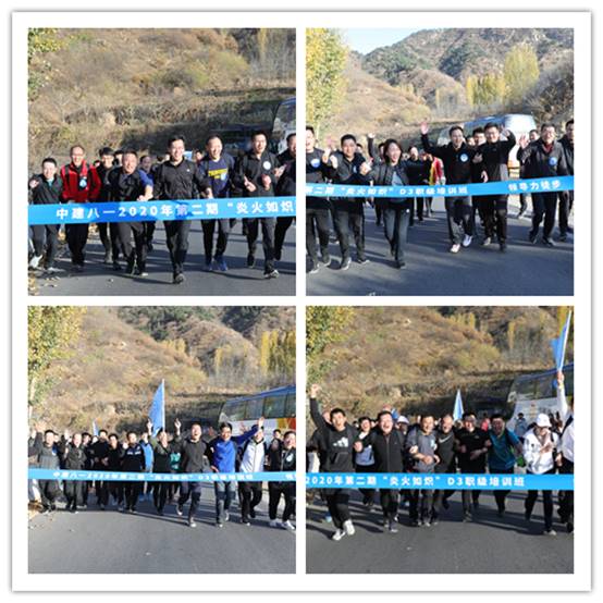 11月8日培訓內容為30公里領導力徒步活動。清晨,公司黨委書記、董事長齊朋,總經理、黨委副書記牛化憲,副總經理王有標,副總經理劉明,副總經理李云,總會計師楊宏偉,紀委書記徐亮,黨委副書記、工會主席劉文納,副總經理李延佩,副總經理王濤,副總經理趙健,人力資源總監、人力資源部經理聶麗12位領導帶領四支隊伍,整裝待發。出發前,各隊進行團隊風采展示,學員代表陳前鐘帶領大家宣誓。在完成準備活動后,公司領導帶領四隊學員正式踏上征程。