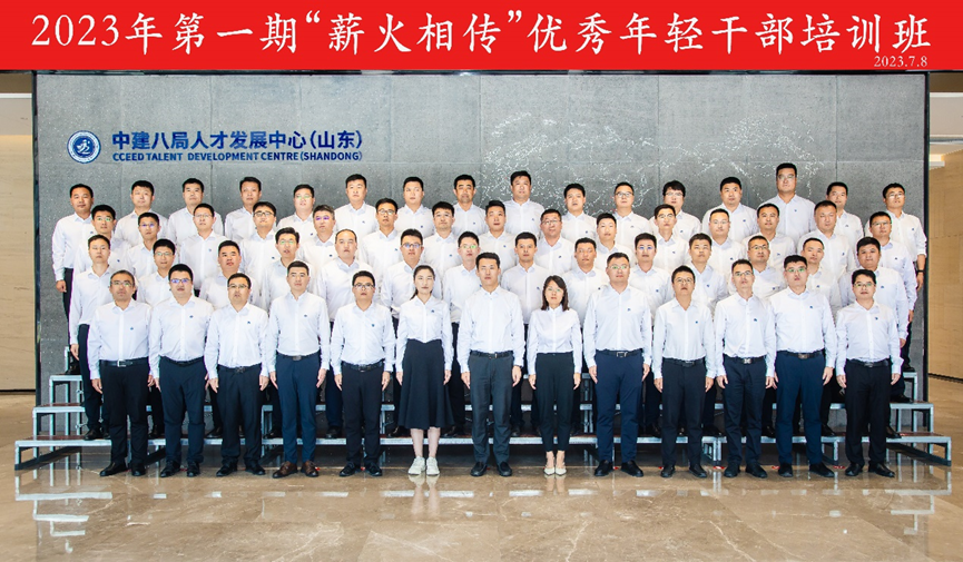 7月6日-9日,公司2023年第一期“薪火相傳”優秀年輕干部培訓班在中建八局人才發展中心(山東)順利結業。公司黨委書記、董事長齊朋出席并進行授課。黨委副書記、工會主席聶麗,總部相關部門負責人等參加結業儀式,59名公司優秀年輕干部參加培訓。
