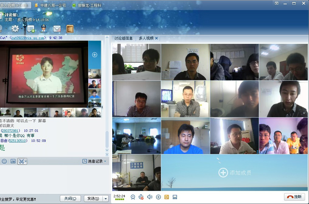 由于裝飾分公司項目多,工期緊,人員較為分散,團支部通過QQ視頻會議的方式召開此次會議。免去了參會人員從項目到機關的奔波,有效的保證了施工生產的正常進行,為項目人員節約了大量的寶貴時間和精力。