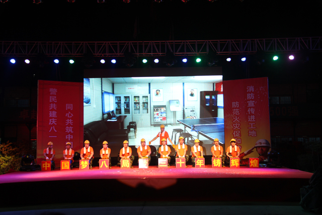 晚會(huì)以激情四射的水鼓《鳳舞九天》開場。隨后公司黨委許書記為晚會(huì)致辭。她向大家介紹了一公司的發(fā)展歷程和取得的驕人業(yè)績,并在“八一”建軍節(jié)即將來臨之際,向廣大消防官兵致以節(jié)日的問候和祝賀。晚會(huì)節(jié)目精彩紛呈,現(xiàn)場掌聲不斷,氣氛熱烈。一曲鏗鏘有力的歌曲《咱們工人有力量》唱出了一線工人的豪邁;快板《消防常識(shí)》讓大家在愉快的氣氛中認(rèn)識(shí)到消防安全的重要性;舞蹈《花兒為什么這樣紅》讓大家感受到了別樣的異域風(fēng)情;一公司職工表演的音樂劇《圓夢行動(dòng)》反映了該公司對農(nóng)民工的關(guān)愛,得到了觀眾的一致好評。演出中還穿插播放了火災(zāi)警示片,并由消防人員現(xiàn)場演示,為大家普及了消防知識(shí);進(jìn)行了消防知識(shí)有獎(jiǎng)問答,觀眾踴躍上臺(tái)搶答,現(xiàn)場氣氛非?;钴S。