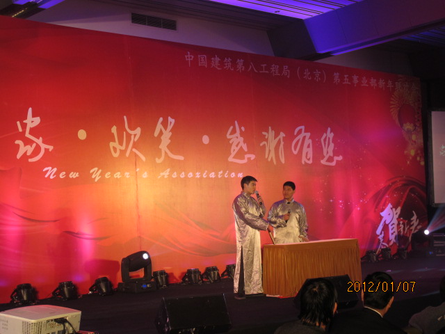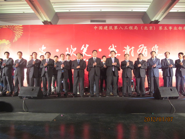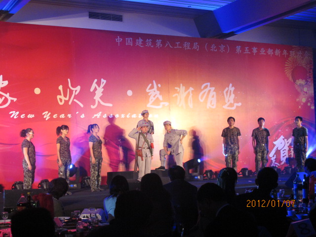窗外飛雪迎春到,堂內(nèi)歡歌賀新年。2012年元月7日,在北京蟹島度假村宴會大廳,北京分公司主題為“家 ? 歡笑 ? 感謝有您”的迎新春團拜會隆重舉行。局北京辦事處黨委書記楊宏選、總經(jīng)濟師郭慶林、總工程師李勝松、副主任楊振縣、一公司工會主席徐偉、副總經(jīng)理劉鵬、他兄弟事業(yè)部主要領(lǐng)導(dǎo)、北京分公司全體員工及其以及在建工程的業(yè)主、監(jiān)理、咨詢、分供商等相關(guān)單位代表等共計400余人參加了晚會,共同迎接即將到來的龍年新春佳節(jié)。