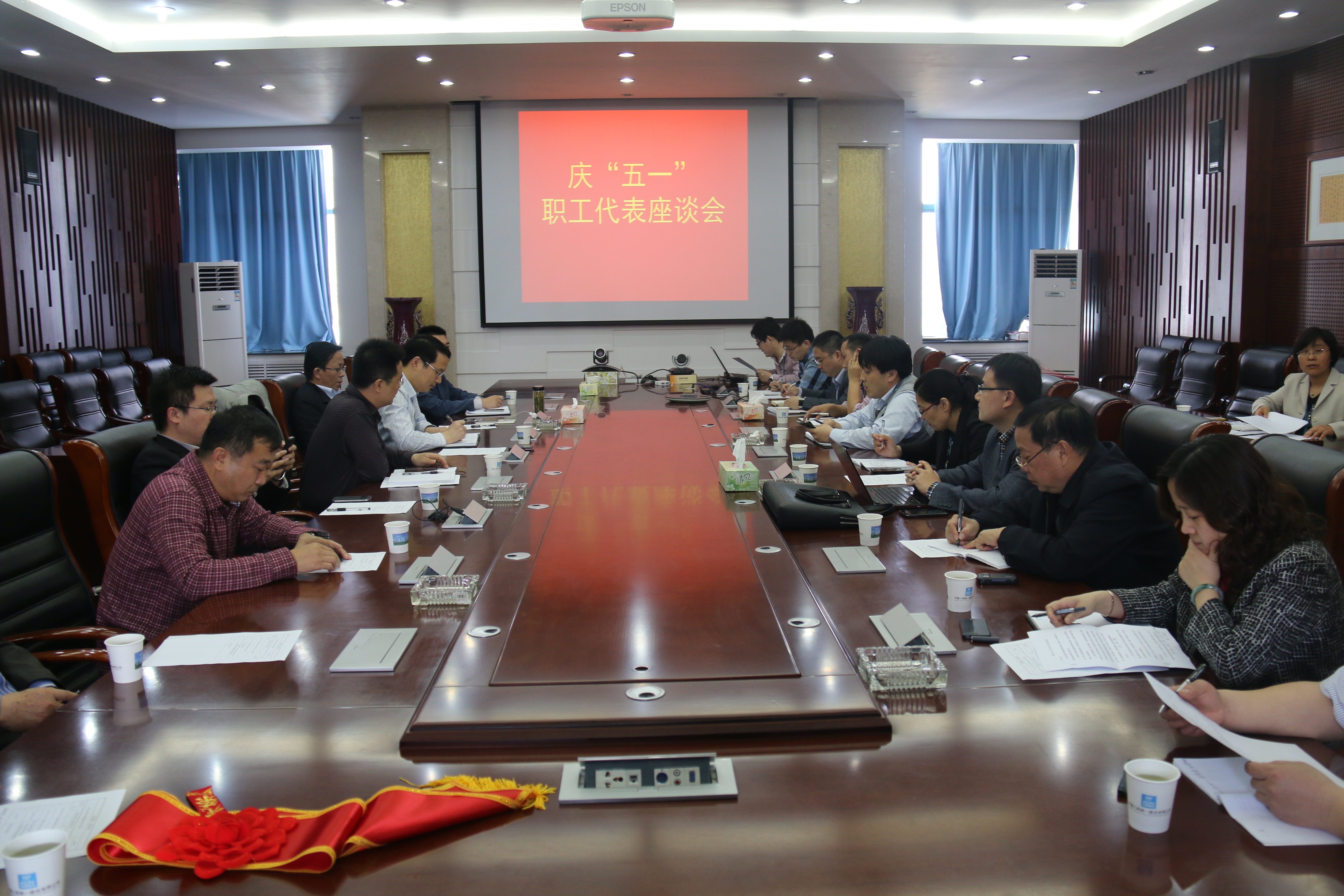4月29日上午,公司在總部七樓會議室召開慶“五一”職工代表座談會。公司黨委副書記董文祥及公司機關、濟南片區各單位的職工代表共20余人參加了座談會.