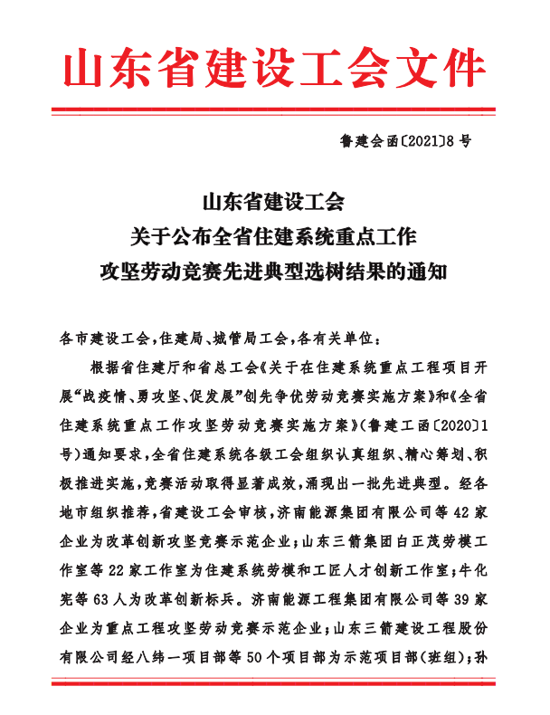 同心圓·建功立業(yè)工程|公司榮獲山東省住建系統(tǒng)重點(diǎn)工作攻堅(jiān)勞動(dòng)競(jìng)賽先進(jìn)典型選樹(shù)活動(dòng)多項(xiàng)榮譽(yù)