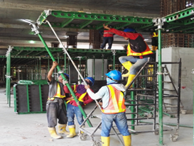 格林快拆體系應(yīng)用:格林早拆模板由鋼框木模面板、帶早拆構(gòu)件的立桿組成,操作方便、易于周轉(zhuǎn)。由于該模板體系操作簡(jiǎn)單,有效提高了模板施工效率,且因?yàn)槭窃绮痼w系,減少了模板一次性投入量。