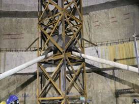 溜槽法施工技術(shù):利用支架及成套溜管組成溜管體系,加快混凝土澆筑速度。